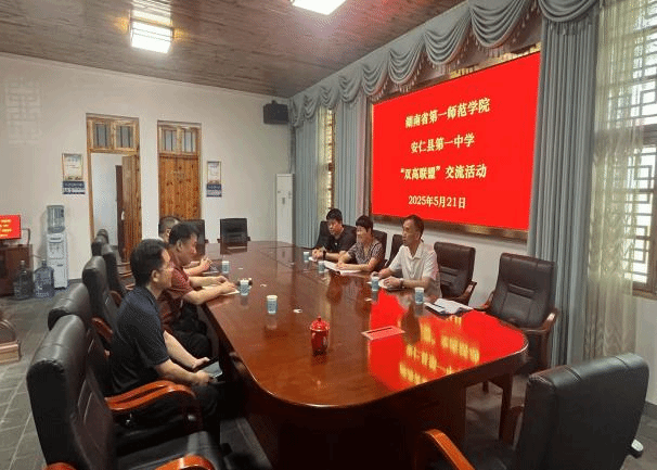 湖南第一师范学院协同郴州市安仁县第一中学开展“人才共育·双高联盟”交流活动。安仁县第一中学党委书记陈大初、校长侯冬发、纪委书记周小兵等参与座谈交流。邹华秀书记重点介绍了学校的基本情况,尤其是第二次党代会以来取得的成效,并做了招生宣传,欢迎安仁县一中优秀学子报考我校。陈大初书记介绍了安仁县一中的基本情况,并赞扬我校毕业生干事创业热情高、执行力强,同时建议高校要重点提升学生的综合素质和能力,并在“开口能说、提笔能写,举手能做”方面下功夫。双方就体育师资培养、大中小思政一体化建设开展交流。两校表示将构建“高校+高中”协同育人机制。共同培养具有科学素养、创新精神和实践能力的复合型人才。