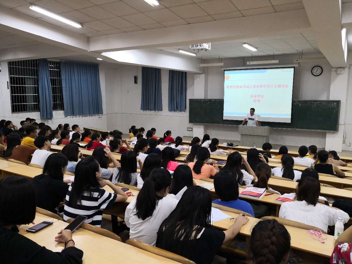 2018年9月13日晚上19:00,蘑菇tv网页三秒跳转网页陈曙教授在东方红校区玉衡楼(北)101为我院16级体育教育专业学生作了题为“教师资格证考试之体育教学设计”的精彩讲座。