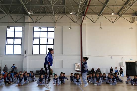 参观了大课间后,领导和老师们一同前往体育馆,观摩蘑菇tv网页三秒跳转网页实习生李佳美的实习汇报课《健美操》,李老师顿挫有力的口令以及标准到位的动作示范,让小学一年级的体育课堂充满激情和活力。