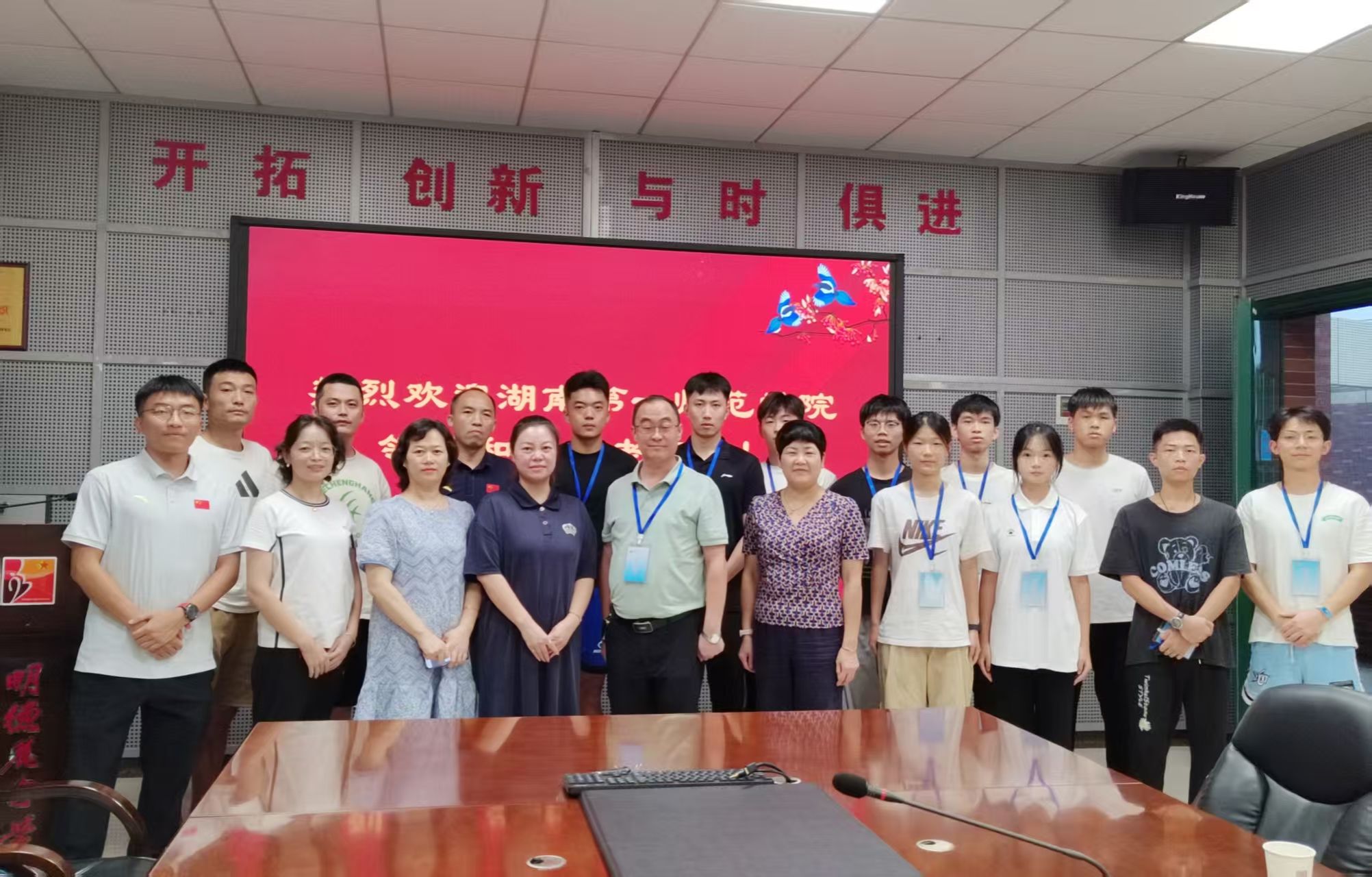 见面会上,明德麓谷学校对湖南第一师范学院师生的到访表示热烈欢迎。校长乐炼围绕学校办学特色、发展概况与教育理念作分享,并介绍实习生将由学校体育教师以“一对二”的“导师制”模式,为每位实习生提供精准、专属的教学指导。明德麓谷学校教务处主任朱智慧就实习期间的具体工作安排、教学规范要求及安全注意事项作详细说明,为实习生厘清实践方向。