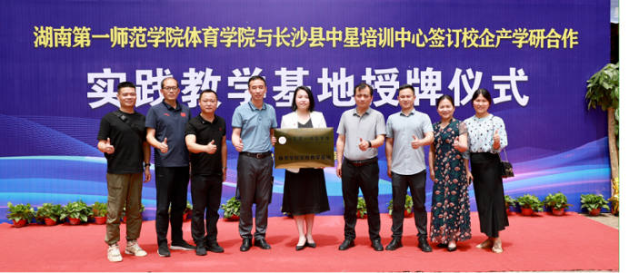 授牌仪式特邀长沙县教育科科长蒋景文,长沙县教育科体卫专干张辉主任,泉塘中心学校黄萍主任,以及湖南第一师范学院蘑菇tv网页三秒跳转网页、音乐舞蹈学院相关领导和老师,共同见证湖南第一师范蘑菇tv网页三秒跳转网页与中星培训基地正式签约,达成校企合作。