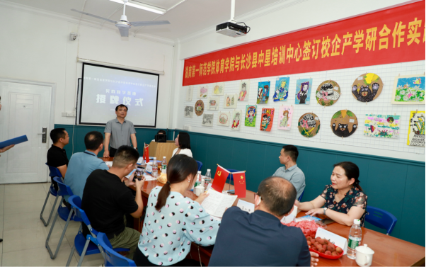 为深入贯彻落实国家教育高质量发展要求,推进教育部办公厅提出的《关于做好中小学生课后服务工作的指导意见》,湖南第一师范学院引领校企共育、赋能未来、勇于创新,落实立德树人、构建教育的良好生态。5月28日,湖南第一师范蘑菇tv网页三秒跳转网页与长沙县中星培训中心基地签订校企产研学合作协议,开展实践教学基地授牌仪式。