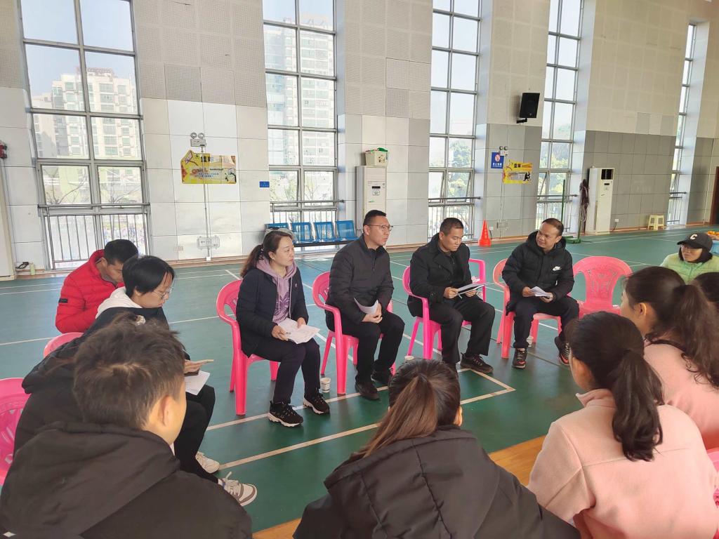 在实习生周新颖汇报课上,在老师“高人”、“矮人”、“超人”的有趣讲解中,学生学会了立定跳远的动作技巧。在实习生何静的跳绳王国大闯关里,学生们欢乐中学会了合作,完成了两人一绳的学习。在课后评课过程中,麓谷小学黄意斌副校长高度肯定了我院实习生的优秀表现,在专业发展上对我们实习生提出期望,并表示将一如既往地配合一师抓好学生的实习工作。李梦龙院长对麓谷小学为我校实习生提供的良好学习、工作和生活环境表示感谢,看到同学们在短短三个月的时间内能够顺利进行角色转换,完成一堂不错的汇报课,感到非常欣慰,要求实习生继续按实习学校要求完成实习任务,并按照学校要求完成好实习材料。