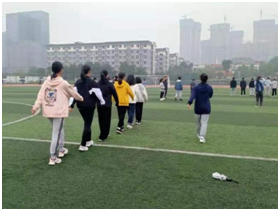 最后,由邹循豪老师带领19级初招全体学生到田径场分组练习口令队列队形和七彩阳光广播体操!