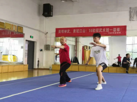 在动作指导过程中,刘险峰老师强调:武术不仅是一项体育运动,更是一份传承,一种文化,一种力量,一种精神。希望同学们牢记武术的重要作用和地位,传承并且与时俱进。