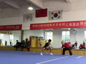 在湖南省武术锦标赛到来之际,4月29日,湖南体育职业技术学校的高级教练员、国家级裁判员刘险峰老师在我校蘑菇tv网页三秒跳转网页黄依柱院长、朱建伟副书记、刘炜和崔建彪老师陪同下,来到体育馆对我校武术训练队的学生进行武术动作指导。