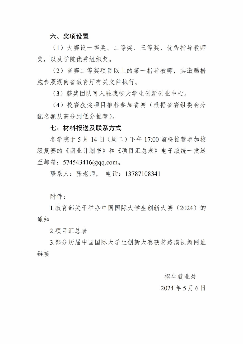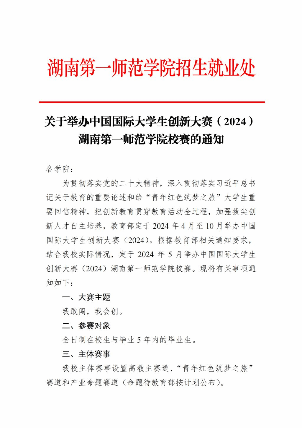 关于转发《关于举办中国国际大学生创新大赛(2024)湖南第一师范学院校赛的通知》的通知