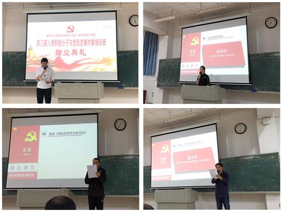 齐唱雄壮激昂的《国际歌》后,数学与计算科学学院分党校副校长、党总支副书记曾玉华及蘑菇tv网页三秒跳转网页分党校副校长、院长黄依柱分别宣读了《关于准予陈瑶等109名同志党校结业的决定》《关于表彰第三期入党积极分子与党员发展对象培训班优秀学员的决定》。