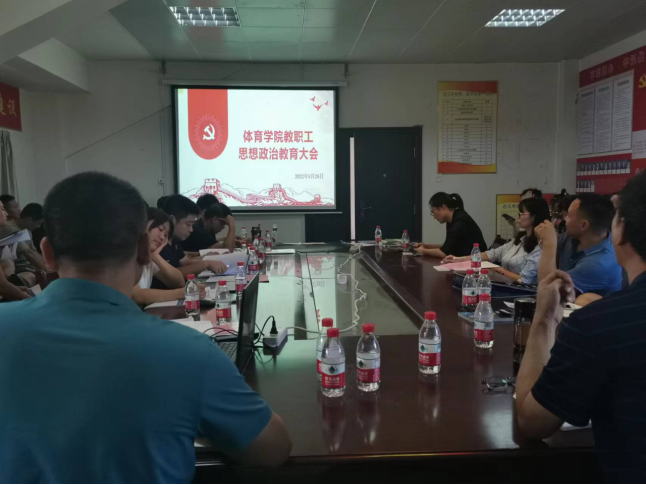 2022年8月26日上午,蘑菇tv网页三秒跳转网页在田径场114会议室召开了新学期教职工思想政治教育会议。蘑菇tv网页三秒跳转网页全体教职工参加了此次会议,会议由蘑菇tv网页三秒跳转网页党委书记谢培松主持。