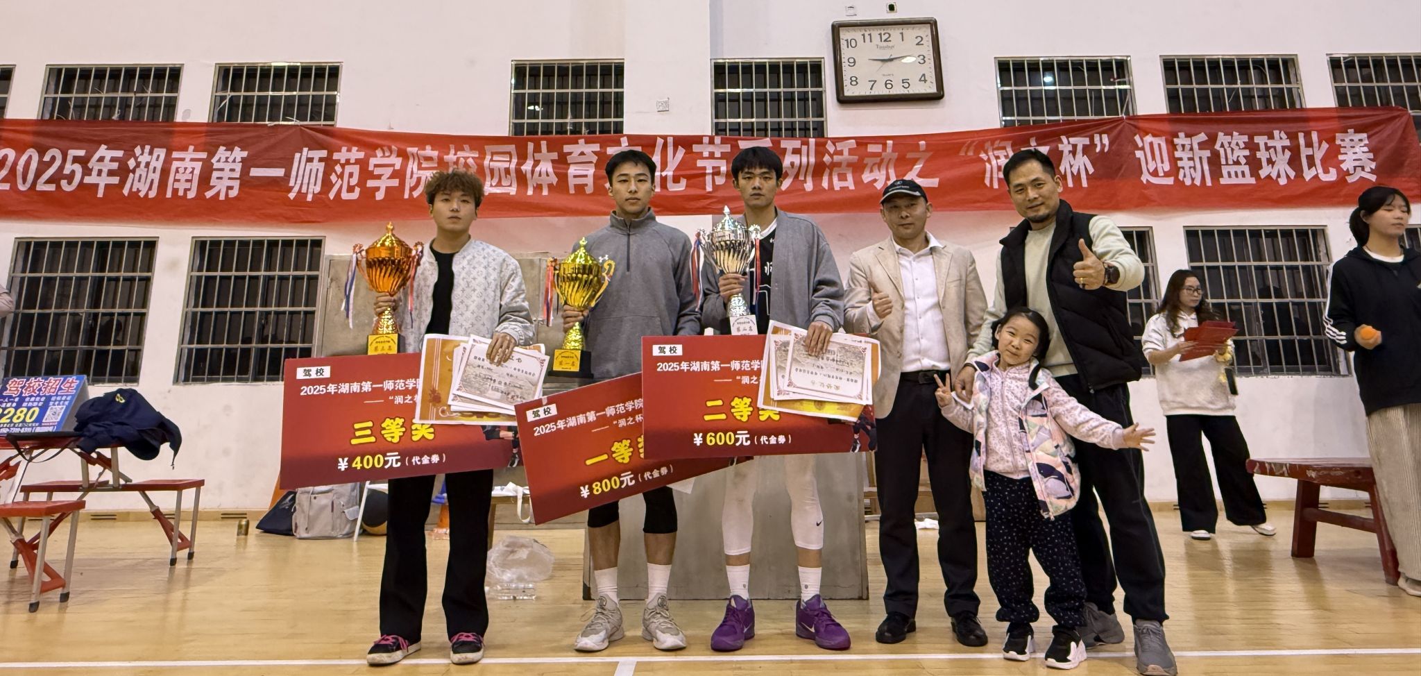 本届“迎新杯”篮球赛得到了学校领导的关心支持和师生的热情参与。参赛球员在赛场上团结协作、奋勇拼搏,工作人员恪尽职守、默默奉献,充分展现了湖一师学子的青春活力与体育精神。