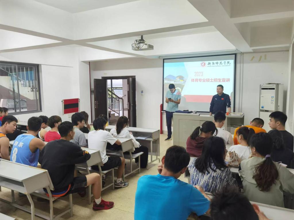 本次衡阳师范学院过来给大家做宣讲的是衡阳师范学院谢正明副院长,谢院长就衡阳师范学院的发展历程、办学理念、培养效果、场馆建议、招生计划、奖助学金等多方面对衡阳师范学院2023年体育专业硕士招生进行宣讲,宣讲会上还有同学当场咨询学校相关政策等。至此本次宣讲会圆满结束。