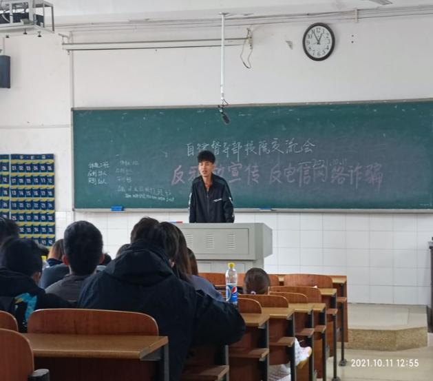 为了培养学生正确的世界观、人生观、价值观,使广大学生进一步提高识别、抵御和有效防范邪教的能力,提升电信诈骗的防范能力, 蘑菇tv网页三秒跳转网页20级、21级全体同学于20211011日在怀中南301302401402四间教室举行了以“反邪教宣传、反电信网络诈骗”为主题的联合安全班会。