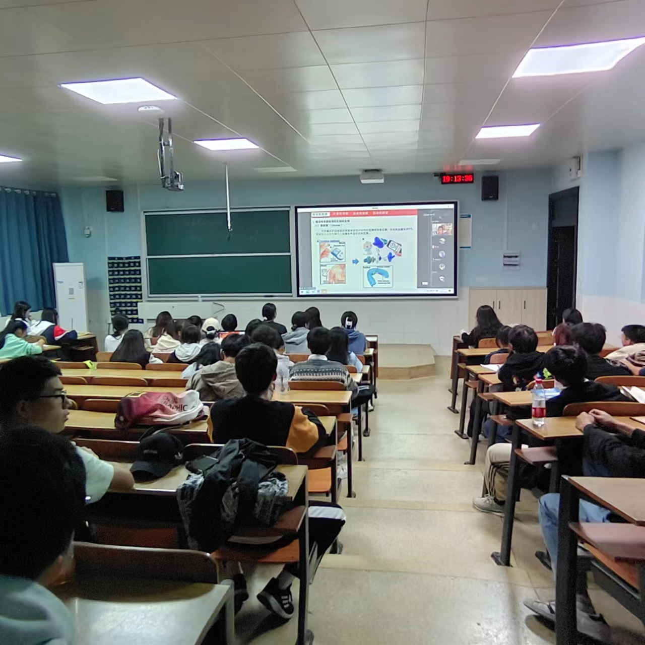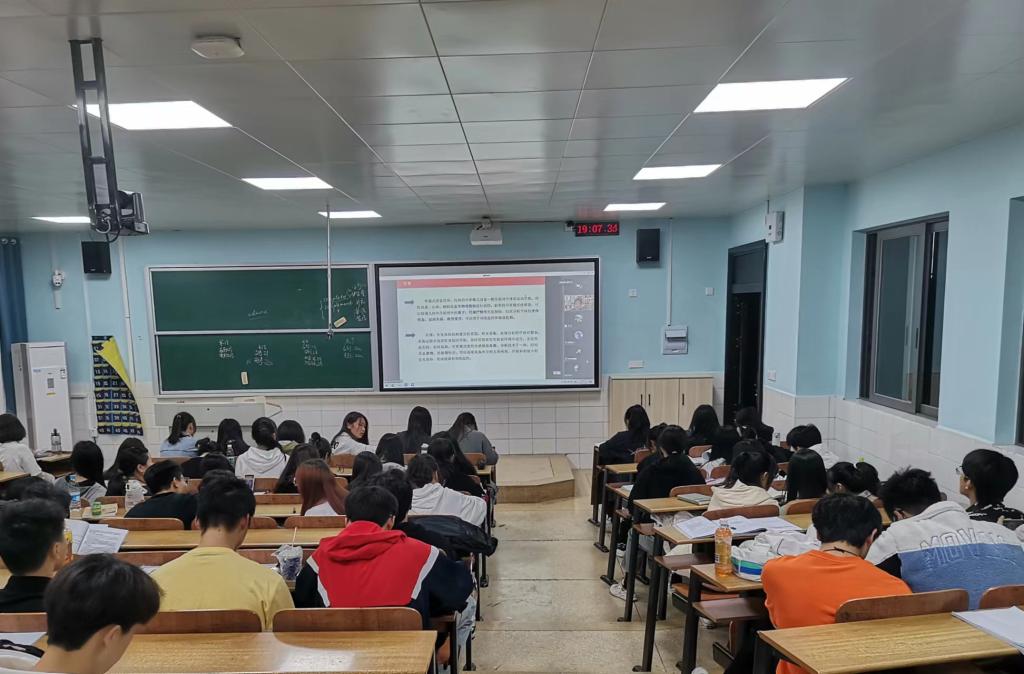 2022年11月6日晚上,全体蘑菇tv网页三秒跳转网页学生于晚自习教室集中收听孟令飞教授的线上讲座。本次讲座的主题为《可穿戴式柔性传感器在运动和健康监测中的应用进展》。