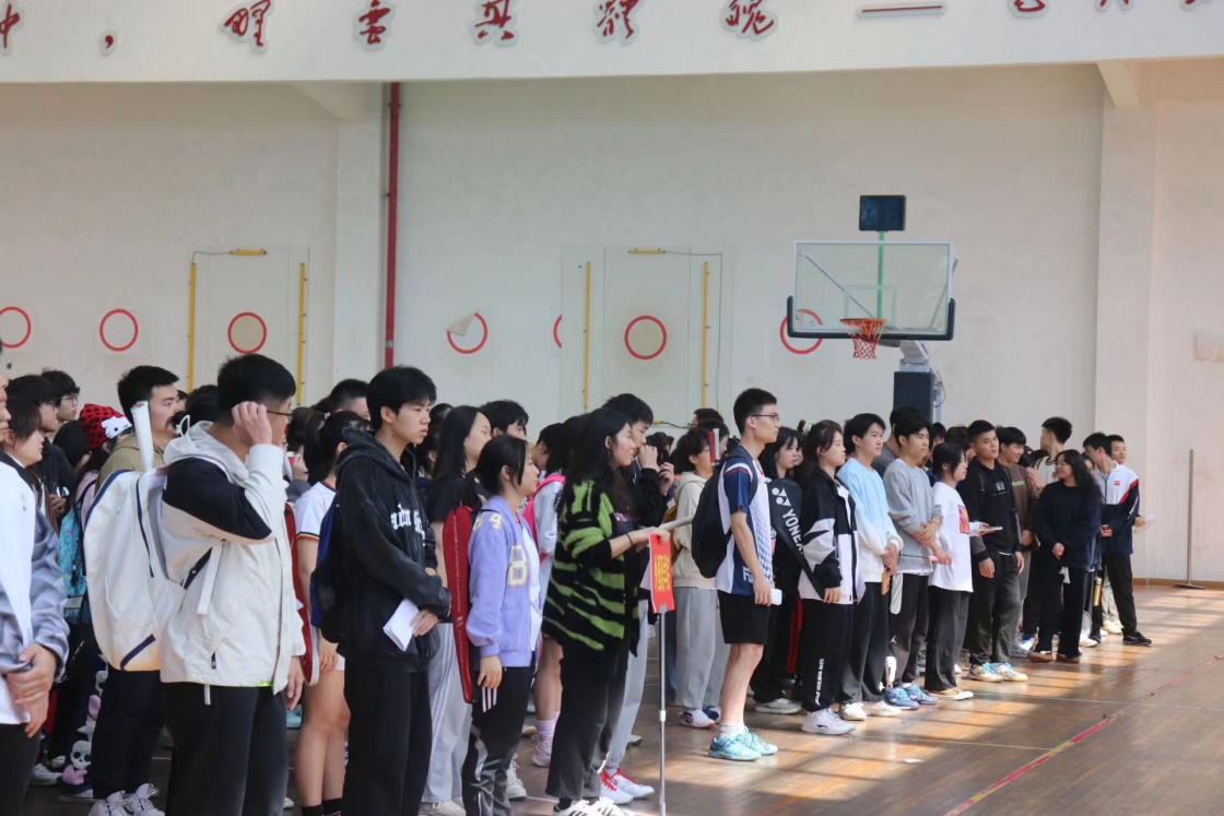 2022年10月31日12:00,“润之杯”羽毛球赛在体育馆举行了简短的开幕式,出席开幕式的有运动训练与竞赛中心刘炜主任、王继承老师以及孙华老师。开幕式由刘炜主任致开幕词,鼓励参赛运动员要赛出水平,赛出风格。紧接着裁判员代表易颖同学,运动员代表欧阳灵谦同学分别在赛前进行了宣誓。最后,刘炜主任宣布比赛开幕。