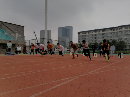 本次测试于10月8日在东方红校区田径场进行,测试项目为100米跑和5米三向折回跑,为了保障测试的顺利进行,本次测试采用了电子发令系统和图像终点采集系统。本次复测工作在测试工作小组全体成员的共同努力下圆满完成。