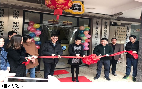 3月9日上午九点,由我院学生喻盈凤参与经营的大学生创新创业实践项目“憨儿乐•茶物语”在岳麓区馨园社区成功挂牌。高新区机关党委副书记李晓阳、麓谷街道党工委副书记、纪工委书记胡裕坤、湖南一师范团委、招生就业处、数学学院主要领导莅临挂牌仪式现场并对该项目进行指导工作。袁向荣书记代表蘑菇tv网页三秒跳转网页出席了此次挂牌仪式。