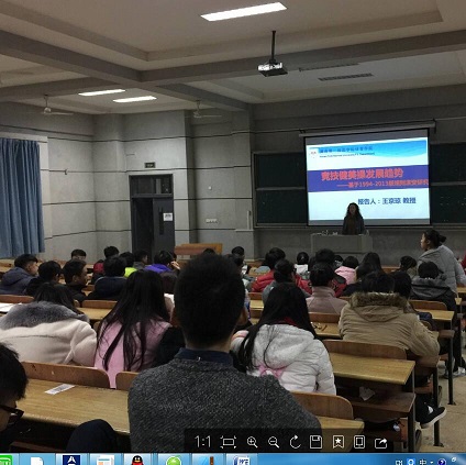 2016年12月13日晚上19:00,蘑菇tv网页三秒跳转网页王京琼教授在东方红校区文科楼多媒体教室为蘑菇tv网页三秒跳转网页师生作了题为“竞技健美操发展趋势”的精彩讲座。