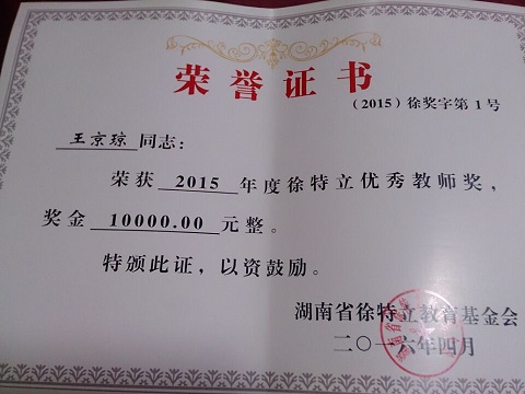 我院王京琼教授荣获2015年度徐特立优秀教师奖,这是我院教师首次获此殊荣,特向全院师生报喜!