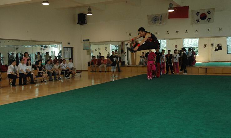 李昇勳校长一行分别在体育训练馆的体操房、武术房参观了我校体育舞蹈队、武术队的训练和表演,高度赞扬了我校运动员不惧酷热在暑假期间坚持训练,体现了体育运动员顽强、拼搏的精神,并与全体老师和队员合影留念。