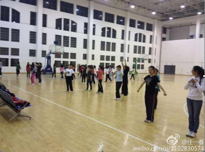 2012年新年伊始,我系组织全院啦啦操、乒乓球、足球体育比赛。3月15日,体育系群体教研室组织各系体育部长召开了赛前动员大会。各系代表纷纷表示要动员全体学生,丰富同学们的课余文化生活,烘托校园体育文化氛围。图为:各系代表参加啦啦操赛前培训。