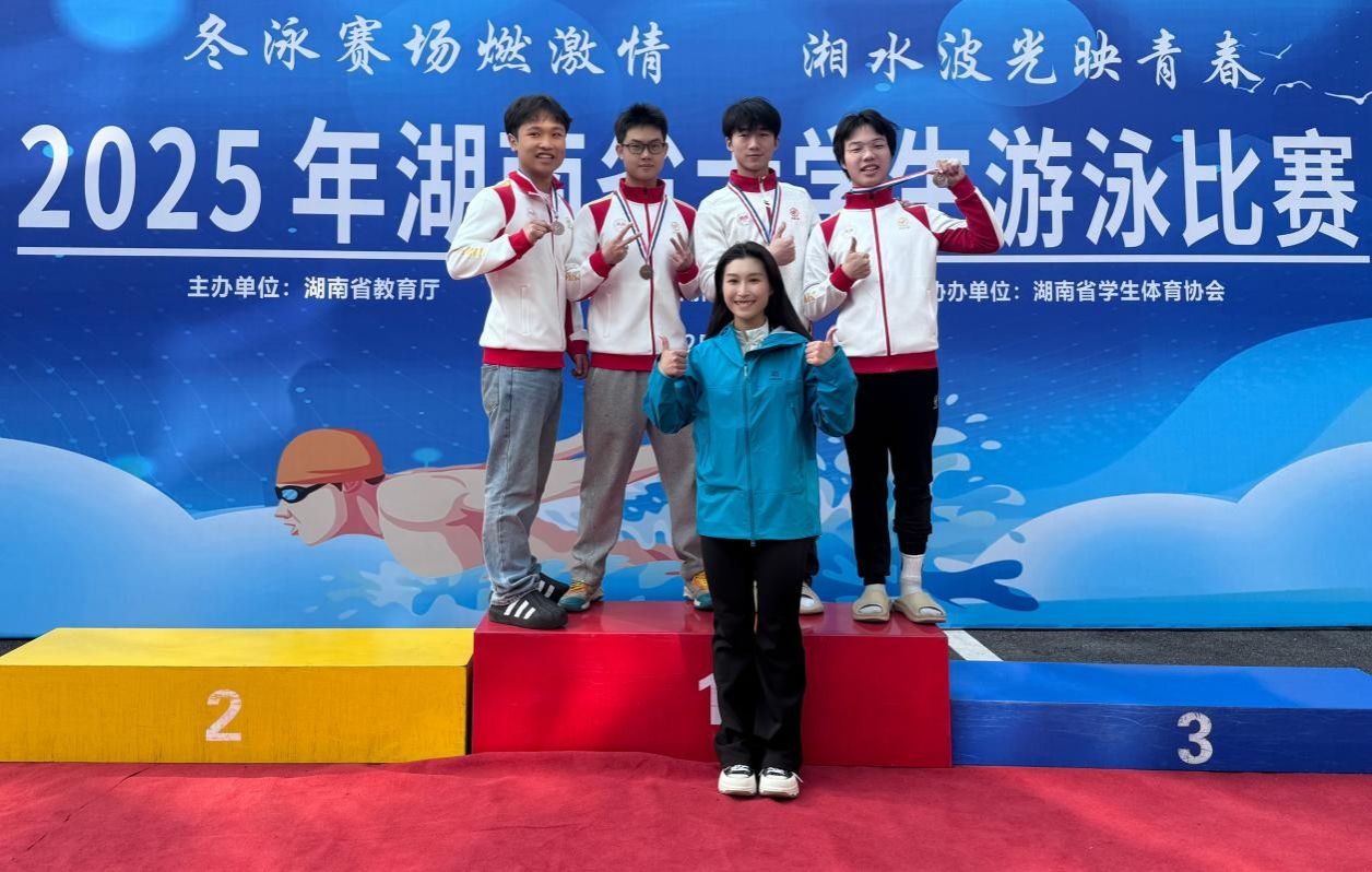 赛场上,我校游泳健儿劈波斩浪、奋勇争先,展现出过硬的身体素质与精湛的游泳技艺。最终,我校游泳队成功打破4项湖南省游泳纪录,斩获2金8银6铜的优异成绩,同时拿下男甲团体总分第三名、女甲团体总分第三名以及女乙团体总分第六名的好成绩,实现了我校在该赛事奖牌上零的突破!