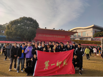 2021年11月28日至12月3日,由湖南省教育厅主办的湖南省大学生田径比赛在湖南师范大学举行。此次比赛共有16个学院代表队参加,我校田径队在领队黄依柱院长,教练员王红杰老师的带领下共有21名队员参加了比赛。经过激烈的角逐,田径队取得了优异的成绩:女子100米栏金牌、银牌,女子七项全能银牌、铜牌,男子三千米障碍赛银牌,男子400米栏铜牌。本次运动会,队员们发扬“更高、更快、更强”的奥林匹克精神,赛出风格,赛出水平,充分展现了训练中超越自己、顽强拼搏的体育精神。