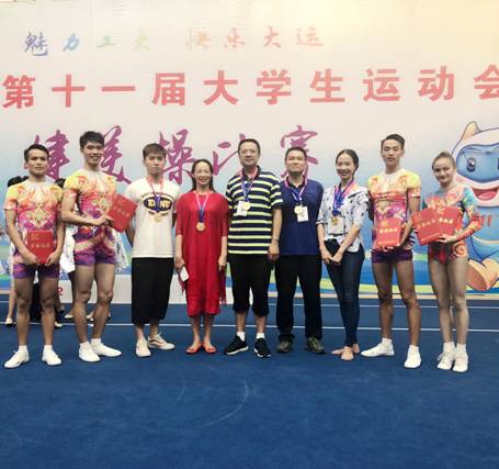 由黄依柱院长担任领队,王京琼教授、罗婕老师、黄子敬老师担任的教练的我校健美操在本次比赛中,勇夺五金一铜的佳绩,并连续五年蝉联该项目学院组的团体冠军,再次为学校赢得了荣誉。充分体现了主席母校的体育专业实力和一师学子顽强拼搏的精神。