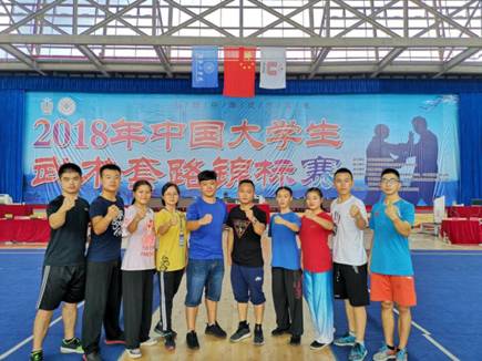 7月30日至8月2日,2018年中国大学生武术锦标赛在湖南工学院举行,我校刘炜、崔建彪老师率校武术队的8名运动员参赛共获得12个奖励,其中男子龙身蛇形太极拳获金牌,我校获得体育道德风尚奖代表队称号。此次比赛由中国大学生体育协会主办的。全国139所高校,149个代表队的1500余名运动员参加了比赛。