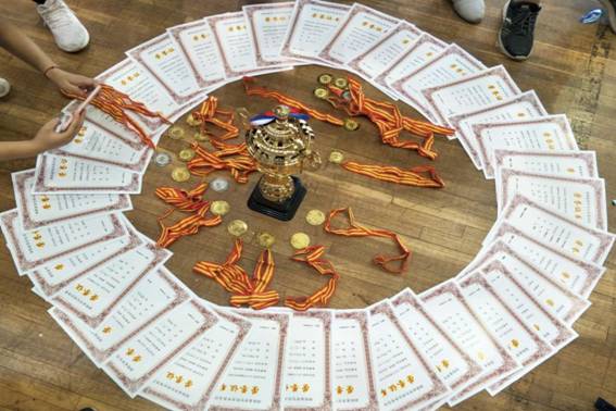 由湖南省学生体育协会主办的2018年湖南省学生阳光体操节跳绳比赛在6月23日湖南师范大学落下帷幕。我校跳绳代表队在领队祝娅副书记,教练员刘丽老师、雷蕾老师的带领下,经过一天的激烈角逐,一举斩获十二项比赛的第一名,并获得三分钟10人交互绳绕8字接力冠军的好成绩,同时刘丽老师与雷蕾老师也分别获得优秀教练员的称号。这是我校花样跳绳队首次参赛,所有成绩的取得,离不开领导的全力支持、教练员的悉心指导以及队员们的刻苦训练。“文明其精神,野蛮其体魄”,愿花样跳绳队的队员们继续努力,勇攀高峰,再创佳绩!