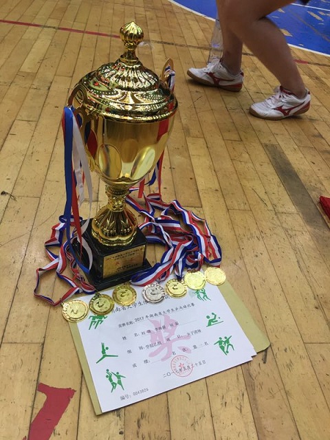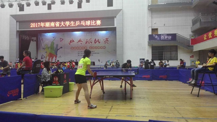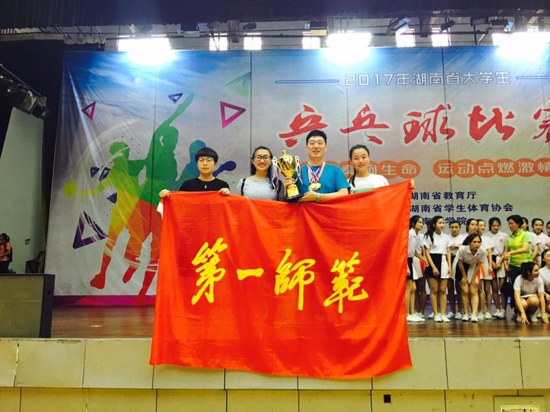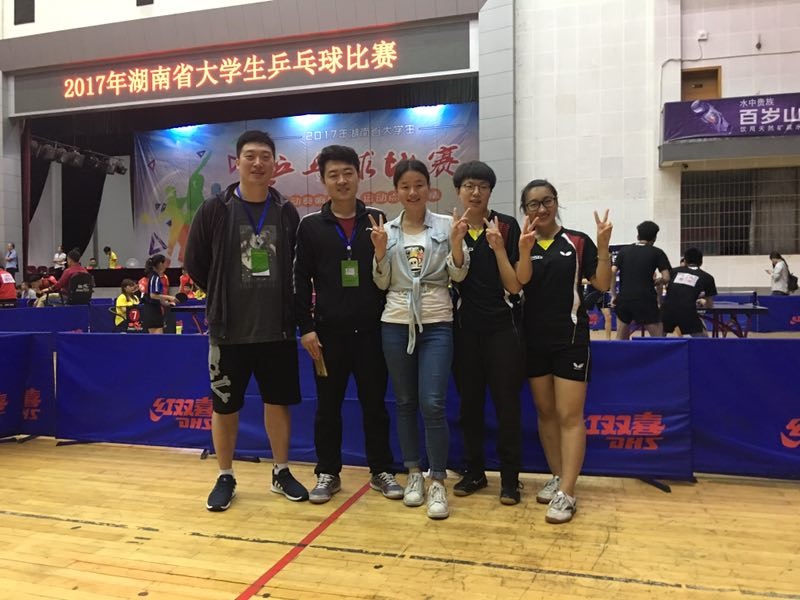 由湖南省教育厅主办的2017年湖南省大学生乒乓球锦标赛于2017年5月19日-25日在湖南商学院举行。本次比赛共有全省31所高校参加比赛。我校乒乓球队在张浩、张扬、周莎老师的带领下,运动员李雨晨(13级教科院)、刘瑛(16级体院)、胡磊(14级体院)在此次比赛中精诚团结、顽强拼搏最终获得了女子团体、女子单打及女双三枚金牌及女子单打银牌,赢得女子项目大满贯,实现我校在乒乓球项目上金牌零的突破,也是我校参加此项目以来历史最好成绩,为学校争得了荣誉。