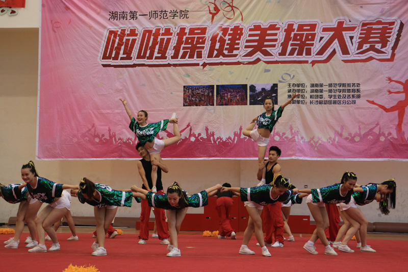 啦啦操、健美操是我校的传统优势体育项目,校队的竞技水平在省内高校中名列前茅,同时校内各学院的啦啦操、健美操竞技氛围也非常浓郁。此次比赛分为体育专业组和非体育专业组,来自全校10个二级学院的840名运动员参加了11个项目比赛。比赛场上热情似火,场下激情澎湃。选手们舒展大方、刚劲有力的动作和振奋、昂扬的精神斗志充分展现了我校大学生的青春风采,赢得了观众们的热烈喝彩。在比赛过程中,校健美操队、校体育舞蹈队和虹桥小学啦啦操队进行了精彩表演。