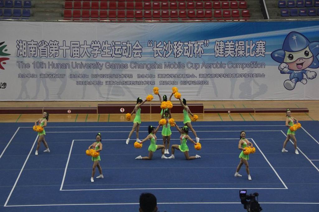 历时70多天的湖南省第十届大学生运动会于2014年11月25日在长沙民政职业技术学院落下帷幕,我校代表团健美操、武术、体育舞蹈、女子排球、羽毛球等项目喜获丰收。共夺得18枚金牌、8枚银牌、6枚铜牌,金牌总数列二十所参赛本科学院第三。其中王京琼、罗婕指导的健美操获得8金1银,姜辉军、胡彩芬指导的武术获得6金4银5铜,丁小芬、雷蕾指导的体育舞蹈获得3金1银,任一春指导的女子排球获得1金、程曼萍指导的羽毛球获得2银1铜。