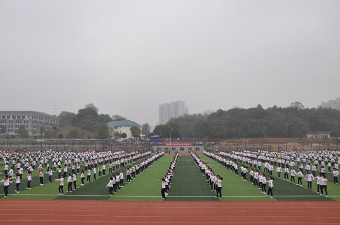 开幕式后,举行了大型的团体操表演。2013级同学表演了《七彩阳光》广播体操、《旭日东升》武术操,2014级同学表演了《毛氏六段锦》、《小苹果》,学校龙狮队表演了《舞龙舞狮》。