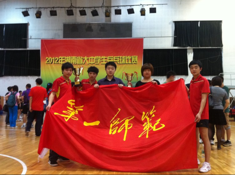 4月25—28日,“2012年湖南省大中学生乒乓球锦标赛”在长郡中学举行。湖南第一师范学院代表队在四天的激烈比赛中,克服了技术、战术、环境、饮食、天气等各种困难,发扬了团结协作、顽强拼搏的精神,获得了学院组男子团体第三名、女子团体第三名,蒋政和童天慧混双第二名、童天慧女子单打第三名的好成绩,这也是我院升本后第一次组队参加省教育厅举办的大学生乒乓球比赛,充分展示了学院优良的体育传统和学子们的良好精神风貌,为学院争得了荣誉。