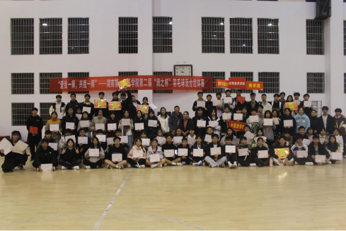 为迎接学校建校120周年,助推“活力一师”“幸福一师”建设,同时丰富大学生课余文化生活,促进学生身心素质和运动交流,202311中旬至12月上旬,我校在东方红校区体育训练馆组织举办了第二届润之杯"暨“爱我一师、兴我一师”大学生羽毛球混合团体