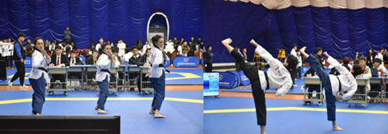 尽管我校队员与高职专科单招专升本的高水平运动员分在一组,竞争压力呈泰山压顶之势,但他们毫无惧色,毅然选择“正面刚”。运动员们发扬“礼仪、廉耻、忍耐、克己、百折不屈”的跆拳道精神,展示了精湛的技艺、敏捷的身手和顽强的意志,在高手如云的竞争中脱颖而出。