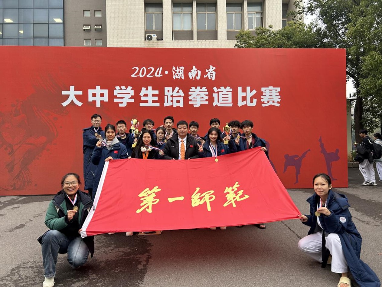 2024年12月1日至6日由湖南省教育厅主办的湖南省大中学生跆拳道比赛在湖南体育职业技术学院举行,我校跆拳道校队25名队员们在蘑菇tv网页三秒跳转网页朱建伟、谭飞老师的带领下。怀揣热忱、斗志昂扬,奔赴这场热血激战,以精湛技艺与顽强毅力,于赛场上一路“披荆棘”,共取得4金6银3铜、8个第五名尽显一师风采