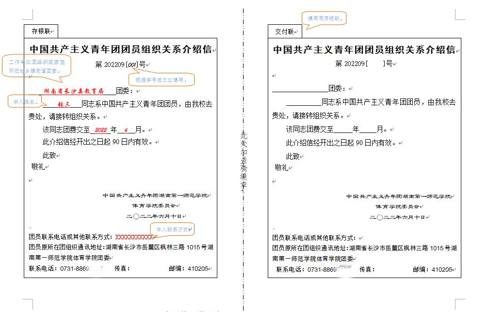 中国共产主义青年团团员组织关系介绍信(第2022[ ]号)