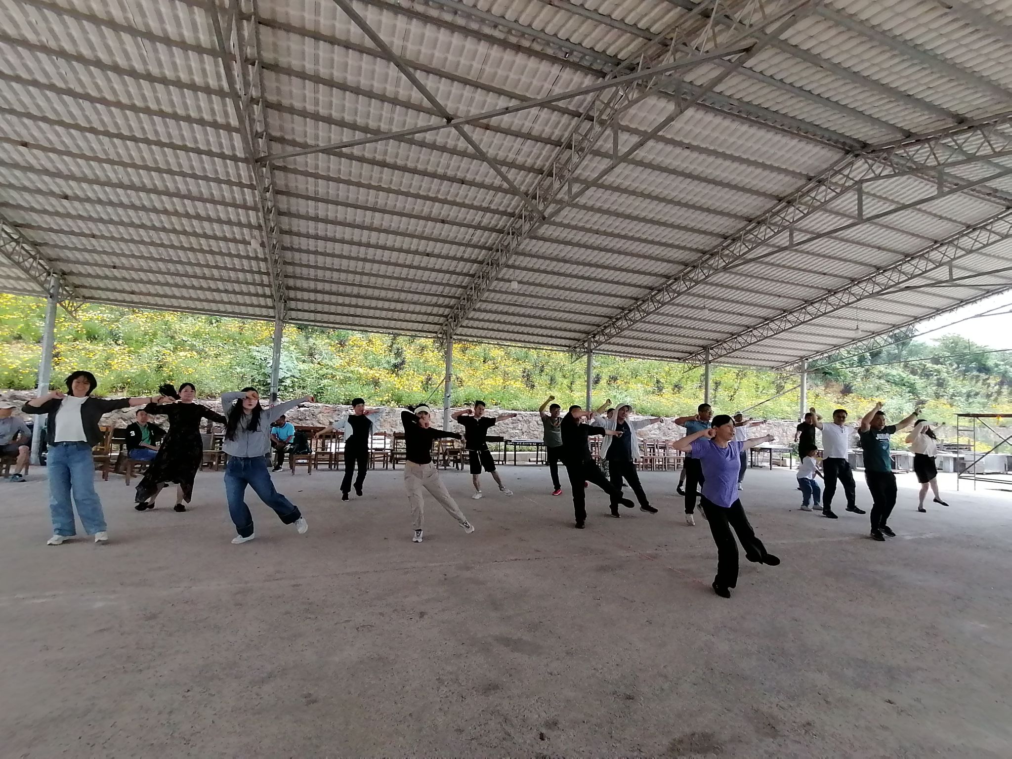 午餐后,全体教职工分为多个小组,依次参与了精心设计的素质拓展项目。拔河比赛作为传统项目,瞬间点燃了现场氛围。各组队员齐心协力、步调一致,绳子两端的拉锯战不仅比拼力量,更考验团队的默契与策略,呐喊声与加油声此起彼伏,展现了教职工们的拼搏精神。扑克翻牌接力则将智慧与速度结合,各组队员需通过默契配合快速翻排扑克牌,在紧张与欢笑中体会协作的重要性。抢凳子游戏以轻松活泼的形式,调动起全场参与热情,大家在快速反应中释放压力,笑声不断。最后,全体人员共同学习了毛氏六段操,在舒展筋骨的同时,感受传统健身文化的魅力,为活动增添了一抹健康活力。随后分工会又开展了唱歌等项目。
