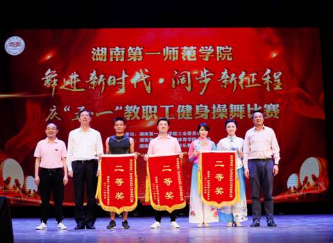 为庆祝五一劳动节,营造我校大众健身氛围,提升教职工身体健康素质,5月3日晚上,湖南第一师范学院“舞进新时代·阔步新征程”庆五·一健身操舞比赛于东方红校区田汉剧场隆重举行,全校各分工会组织的18支参赛队伍参加了比赛。湖南省教育工会主席高新明莅临现场指导,校领导出席并参加了比赛。本次比赛的评委来自湖南省教育工会、湖南大学、湖南师范大学、湖南商学院、中南大学湘雅二医院等单位,比赛由校工会主办,蘑菇tv网页三秒跳转网页分工会、音乐舞蹈学院分工会协办。